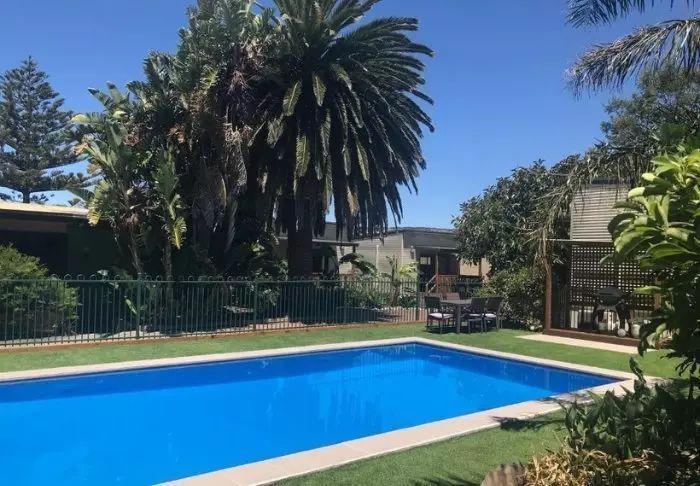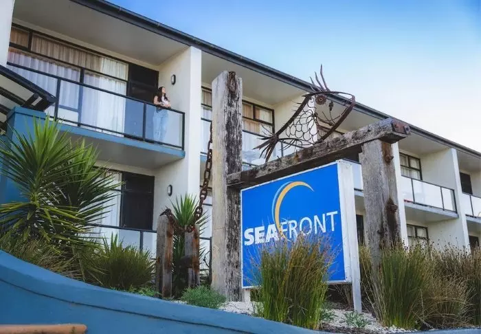 Situated in the middle of Penneshaw, with a lovely view of green grass and blue sea, is Kangaroo Island Seafront.
