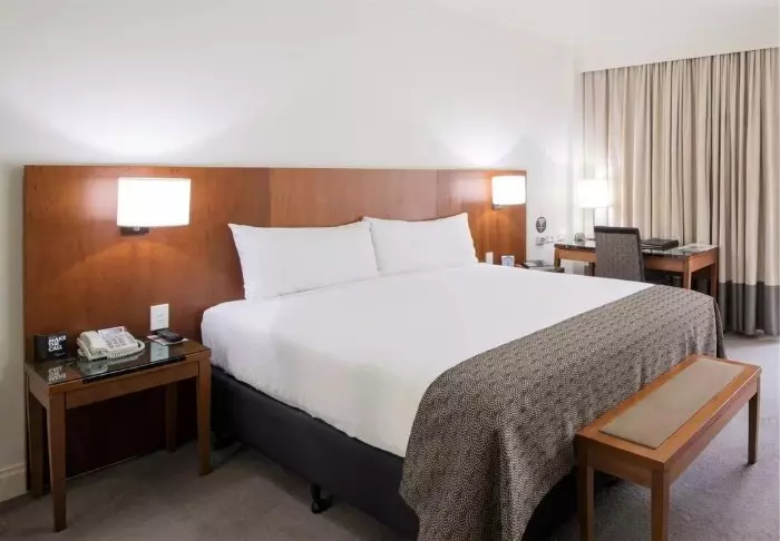 The 120 rooms are furnished in a classic style with muted, neutral colours. All rooms have tea and coffee making facilities, a mini fridge, an ironing board and iron, air conditioning, a flat screen TV, a safe and free Wi-Fi.