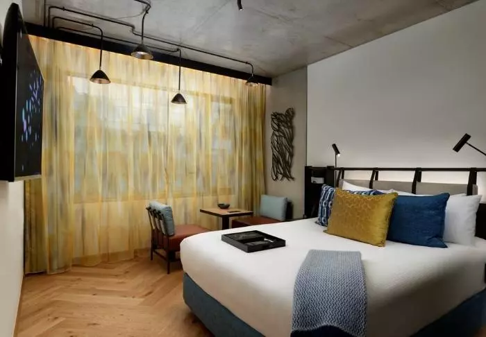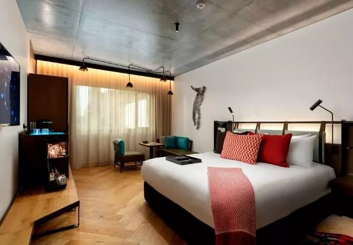 Situated in a converted former cinema in the middle of the city centre is the 5-star boutique hotel, QT. The place oozes Parisian elegance with clean lines mixed with a hipster-industrial look with stone, metal and neon lights.