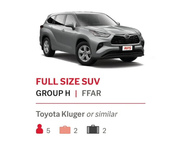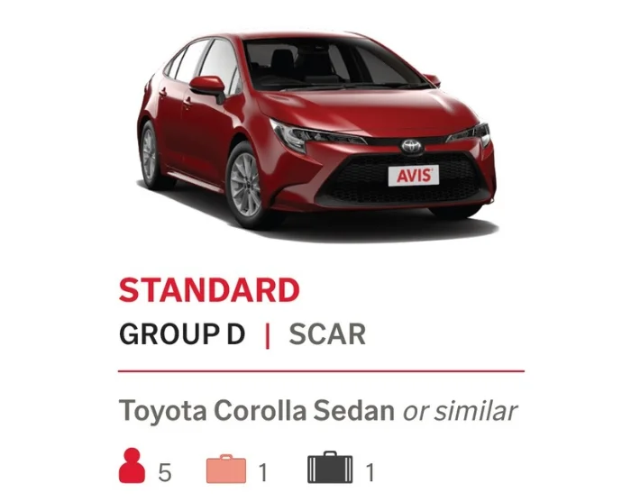 We use AVIS as our car hire partner in Australia. As standard, your included car hire features a category D ‘standard’ Toyota Corolla Sedan or similar, suitable for 1–3 people with luggage. It’s possible to upgrade to higher categories and different models if you’re travelling as a larger group or simply prefer a more spacious vehicle.