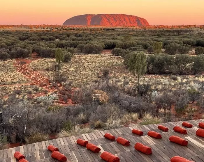 You’ll be picked up from your hotel and driven a short distance to the open-air desert theatre, located on a sand dune with breathtaking views of Uluru and Kata Tjuta. The name Wintjiri Wiru means ‘beautiful view out to the horizon in Pitjantjatjara, the local language, and perfectly captures the essence of this wonderful evening excursion.