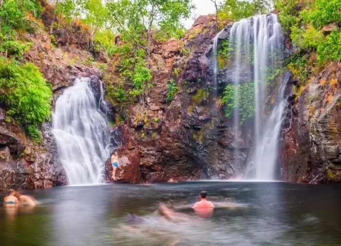 The park is quite a bit smaller than Kakadu, making it significantly more doable. The nature is reminiscent of Kakadu, but on a smaller scale, the main difference being that you can swim in waterfalls and rocky lakes here, as the large saltwater crocodiles can’t make their way that far inland.