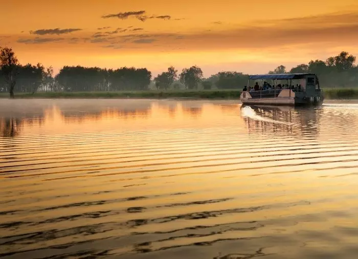 Today, you’re heading to Kakadu National Park, a UNESCO World Heritage Site. Australia’s largest national park, it is considered by many to be the most scenic national park in the country. The nature is beautiful and unique with a mix of mangroves, waterfalls, cliffs, open landscapes, rivers, waterholes and giant termite mounds.
