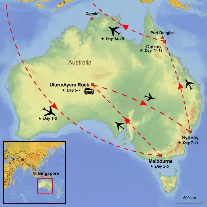 • Head out into the Outback, gain exciting insights into the indigenous people’s history, and see the majestic Uluru