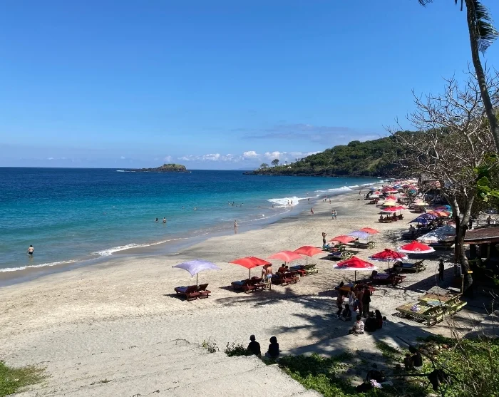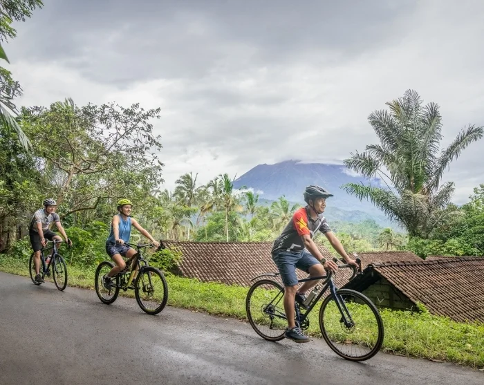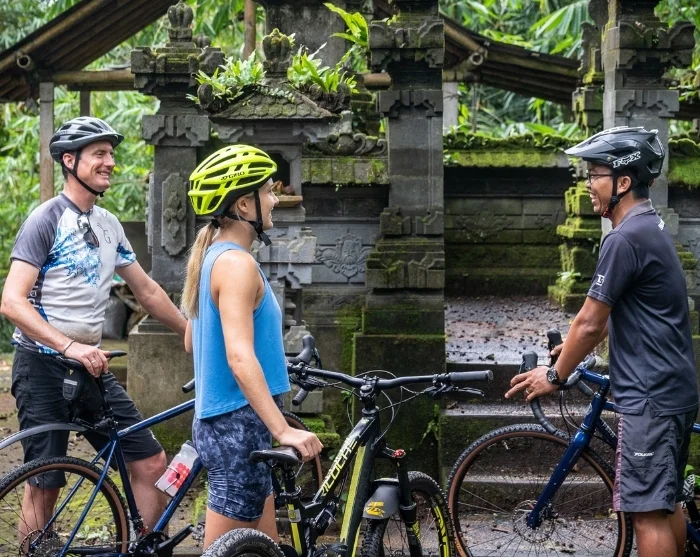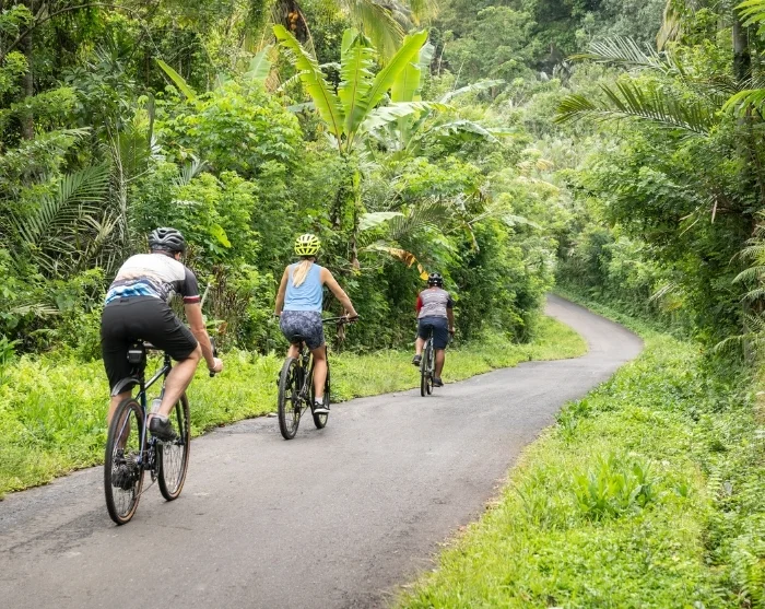 The tour will continue down through green rice fields, where the landscape opens up and the pace naturally slows. At the end, Virgin Beach awaits with its clear blue water and dark volcanic rocks that frame the shore beautifully. The beach is wide and bright with fine sand, and there’s time for both sunbathing and a refreshing swim before you’re served an authentic lunch of freshly caught fish with local accompaniments.