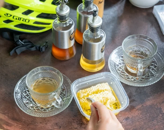 You’ll set off on a scenic ride along soft, rolling hills, with most of the route downhill, interrupted only by a few short uphill sections. Along the way, colourful flowers, moss-clad temples, and little shrines emerge throughout the landscape. You’ll visit a very special apiary run by a hearing-impaired couple who, with great passion, have created their own sustainable beekeeping venture. Here you’ll hear their story and taste delicious honey produced with respect for both nature and tradition.