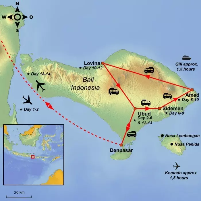 Get up close to the soul of Bali in Ubud, discover Sidemens pristine landscapes, the authentic snorkelling paradise of Amed, and end it all in Lovina with its dark volcanic beaches.