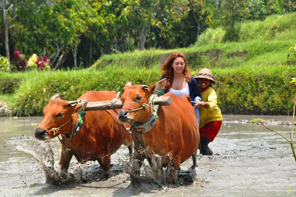 You will then be driven the last stretch to the village of Rumah Desa, where you will be met by a local host who will show you around. You will see and hear how the families live, cook, build houses and farm, and if you’re game, you’ll have the chance to participate in the activities yourself. There will also be a walk through the village, taking in its small houses, temples, the local school and a beautiful landscape with exotic plants and trees. You will also pass the stunning green rice fields, where you will see the farmers at work with their water buffaloes, and observe how the coconut palms are climbed and how the coconut oil is extracted.