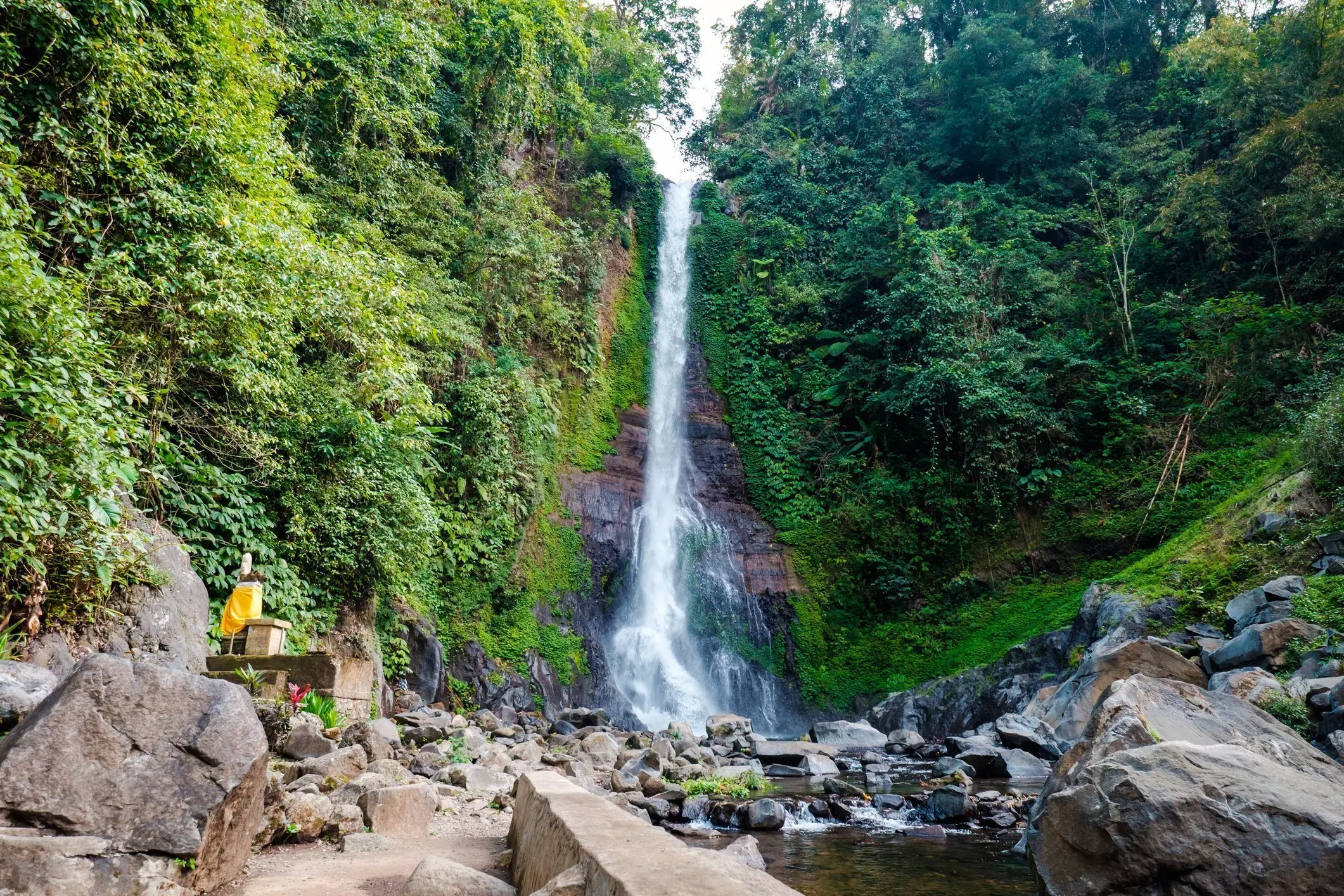 The last stop is the fascinating and photogenic waterfall, Tukad Cepung, a hidden gem in the jungle east of Kehen Temple. Steps lead down from the car park to the jungle, and after around 20 minutes you reach the bottom. You then follow a path along a stream, observing the lush surroundings as you go. Please note that you will be walking in water on the final stretch to the waterfall itself, so remember to wear good shoes that can get wet! The sight of Tukad Cepung takes everyone’s breath away. The waterfall drops 15 metres between impressive rock formations, and in good weather, you can see the sun’s rays shine down into the cave, creating the perfect photo.