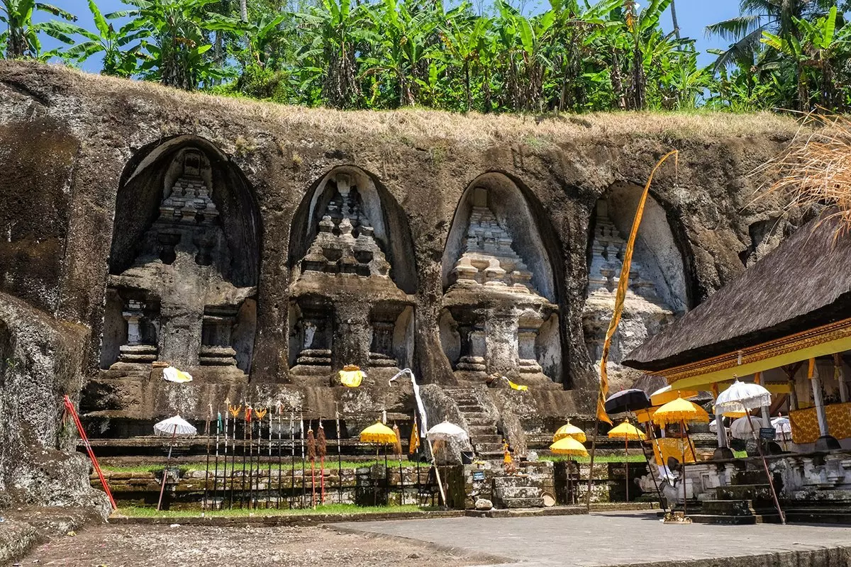 From Tirta Empul, you will be driven to the Gunung Kawi temple complex, one of Bali’s oldest temples. Gunung Kawi is set in a valley surrounded by lush jungle, and stairs take you past verdant rice terraces and tall palms down to the temple itself. The Pakerisan River, which has religious significance for Balinese Hindus, flows alongside Gunung Kawi. Water passing through a sanctuary is said to be transformed into holy water. When you get to the river, you have to cross a small stone bridge to get to the main attraction of the temple: the ancient royal tombs carved into the rocks. You have time here to walk around and admire the ancient, serene site dating back to the 11th century.