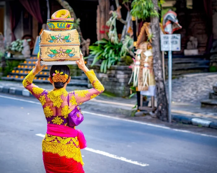 There are often ceremonial processions in the temples and streets, which are a fun and evocative experience. The Balinese are dressed in their traditional costumes, and lining the pavements are small baskets woven from banana leaves containing offerings and incense sticks to protect against evil.