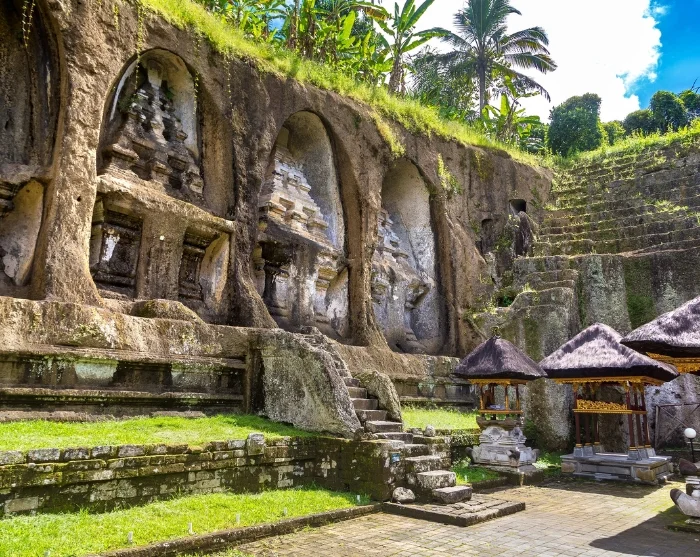Before reaching Ubud, you will visit the Gunung Kawi temple complex, an often overlooked attraction. Built in the late 11th century, Gunung Kawi is one of Bali’s oldest temples. Gunung Kawi is set in a lush valley surrounded by jungle, and stairs take you past magnificent rice terraces and tall coconut palms down to the temple itself. The Pekerisan River, which has religious significance for Balinese Hindus, flows alongside the temple. Water passing through a sanctuary is said to be transformed into holy water. When you get to the river, a small stone bridge leads you across to the main attraction of the temple: the ancient royal tombs carved into the rocks. Here, you have time to walk around and enjoy the ancient, serene site.