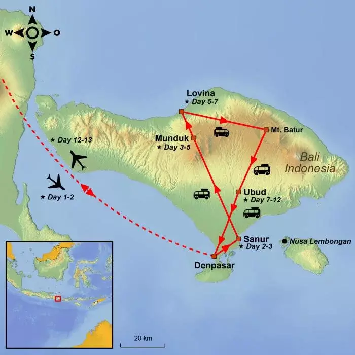 The tour starts with a night in the resort town of Sanur, where you can relax after the long flight and acclimatise to the time difference before the tour begins in earnest.