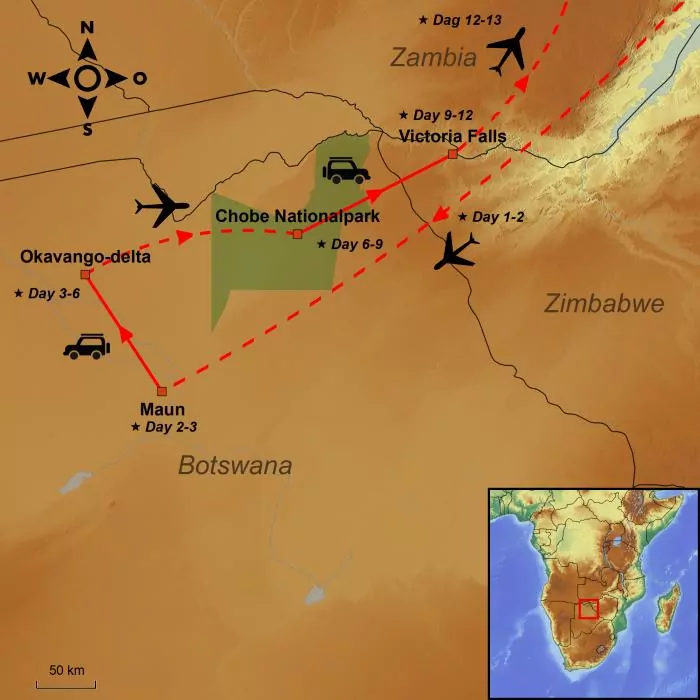 Today is departure day, and you will be flying to Botswana with connecting flight(s) on the way.