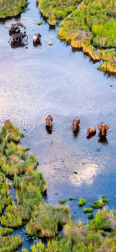 You set off from the hotel in the morning and head to the eastern section of the Okavango Delta – a trip of around 100 km. En route, you can enjoy the sight of local villages, mopane trees and perhaps even the first wild animals. Neither national parks nor game reserves in Botswana are fenced in, so in the dry season the elephants can easily find their way into the villages in their hunt for water.