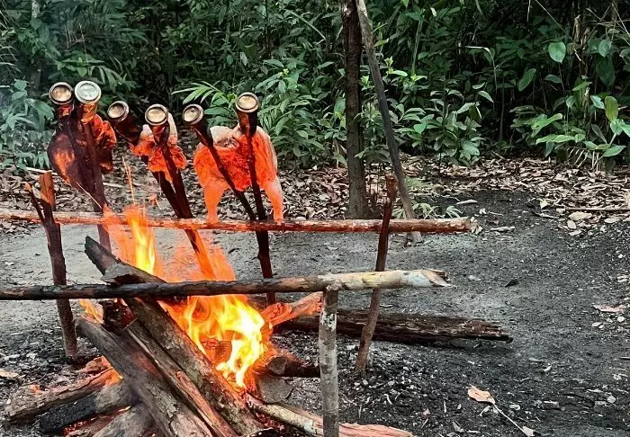 In the evening, you’ll prepare dinner together over a campfire, served on banana leaves.
