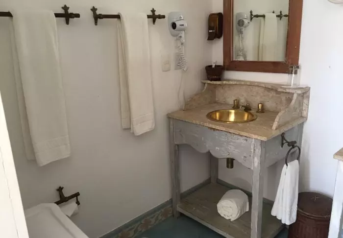 The hotel has just 17 rooms, all of which are uniquely furnished with beautiful old furniture that is in keeping with the age of the buildings. All of the rooms have air conditioning, a minibar, a TV and Wi-Fi, and a bathroom with a hair dryer and bathrobes.