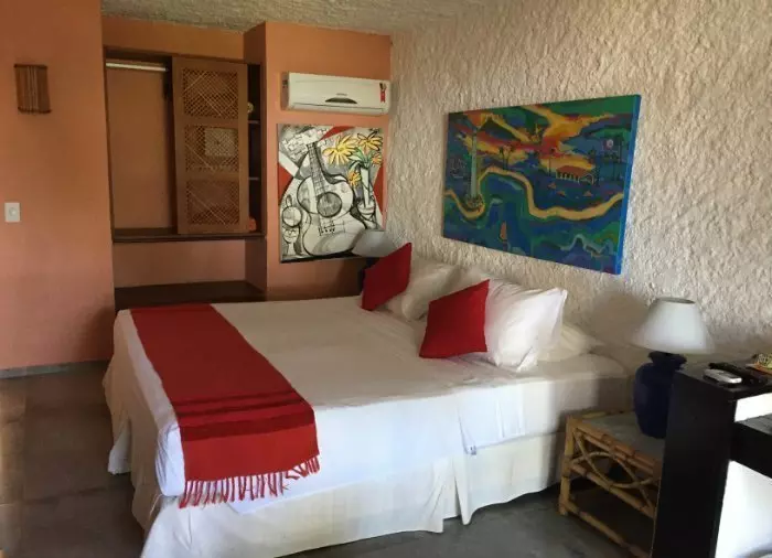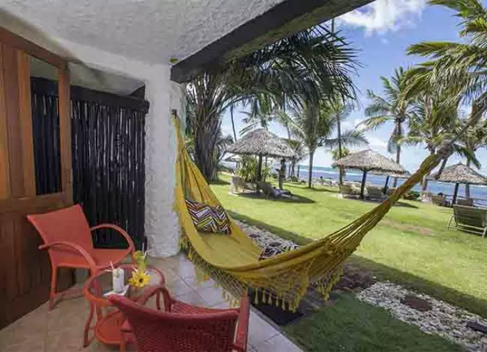 The rooms are simply appointed with colourful paintings by a local artist and feature airconditioning, free Wi-Fi a TV, a safe, a hair dryer and a minibar. Relax in a hammock on the terrace or balcony while enjoying the sound of the waves.