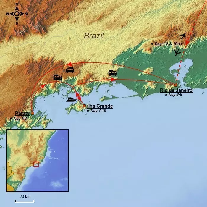 The journey ends on the lush paradise island of Ilha Grande, where beautiful scenery and unspoilt beaches await you.