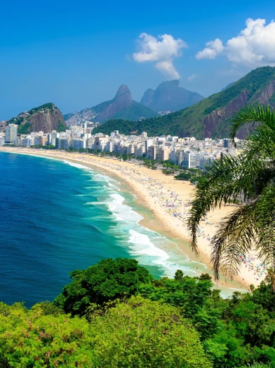 After breakfast, you fly from Foz do Iguaçu to Rio. At the airport, you are picked up by an English-speaking guide who drives you to your hotel, which is near the famous Copacabana beach.
