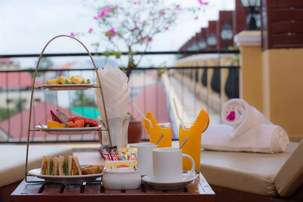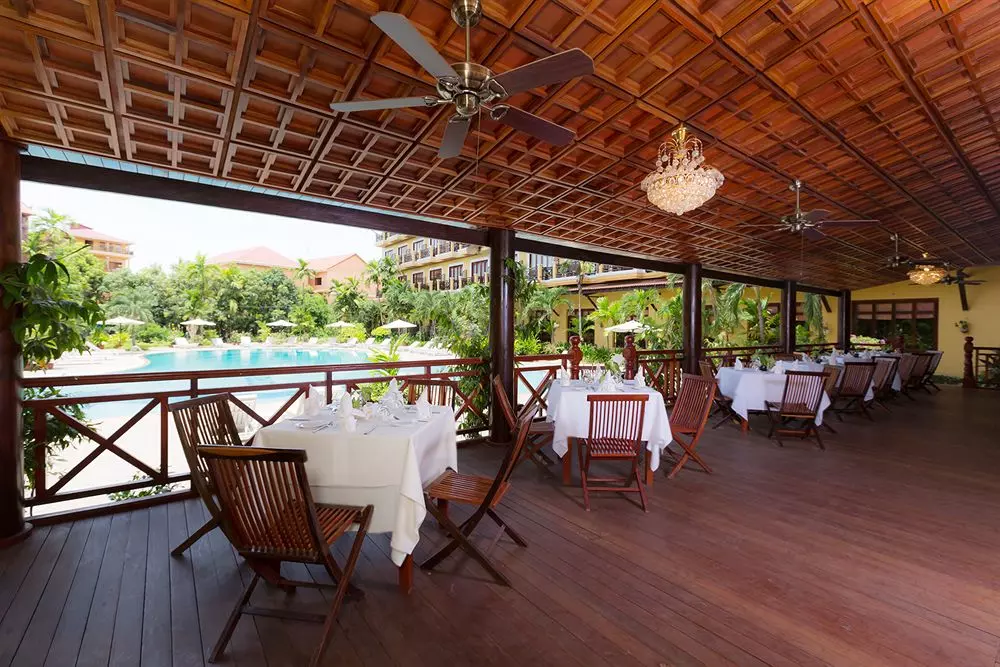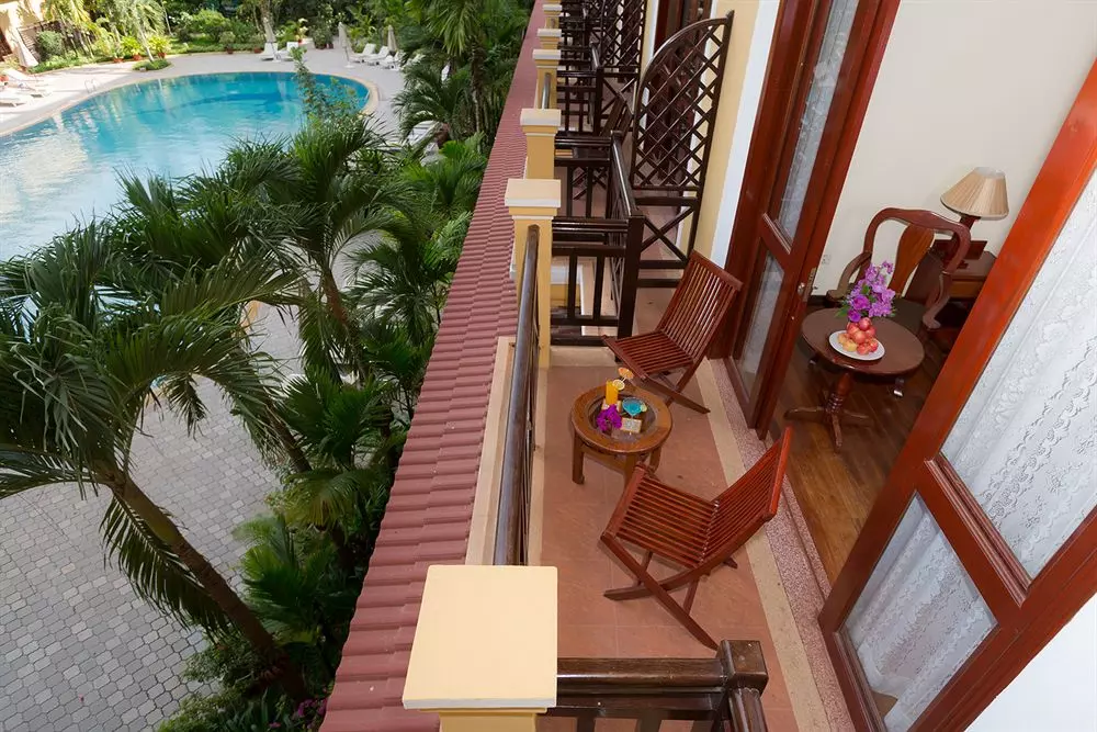 The hotel has a nice swimming pool, a small fitness centre, a restaurant, a spa and Wi-Fi in all public areas. It is on five floors, with a total of 169 rooms, each of which has beautiful timber flooring made from local dark woods, an en-suite bathroom with separate shower and bath, and either a balcony or a terrace. All rooms have a minibar, a safe, a flat-screen TV with satellite channels, and tea- and coffee-making facilities.