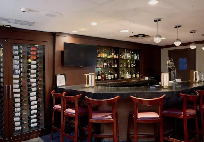 The hotel’s own restaurant and bar offers breakfast, lunch, and dinner for an additional charge, with a menu featuring classic North American dishes.