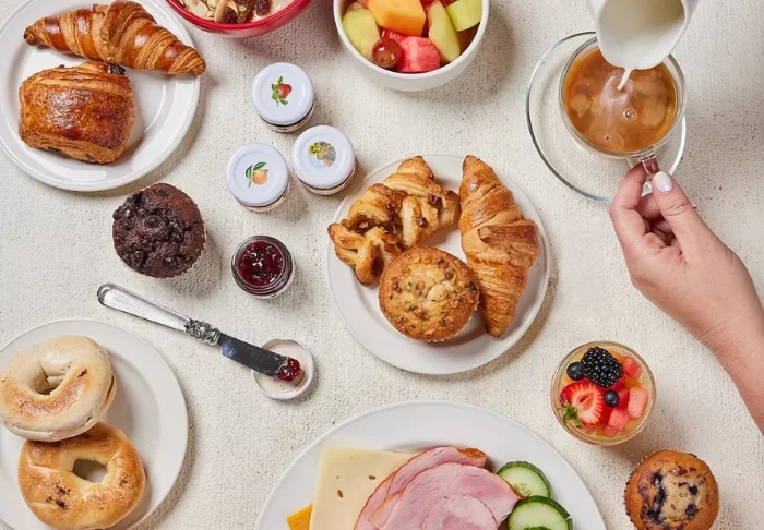 Every morning, a complimentary breakfast is served, including cereals, yoghurt, bread, juice, and coffee—perfect for setting you up before you head out on your next adventure.