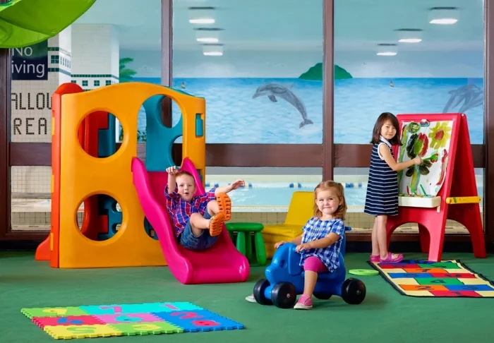 The hotels feature an indoor courtyard, which is an absolute paradise for families with children. Here, you’ll find a heated swimming pool, two hot tubs, an indoor play area, as well as a golf lounge complete with simulators.