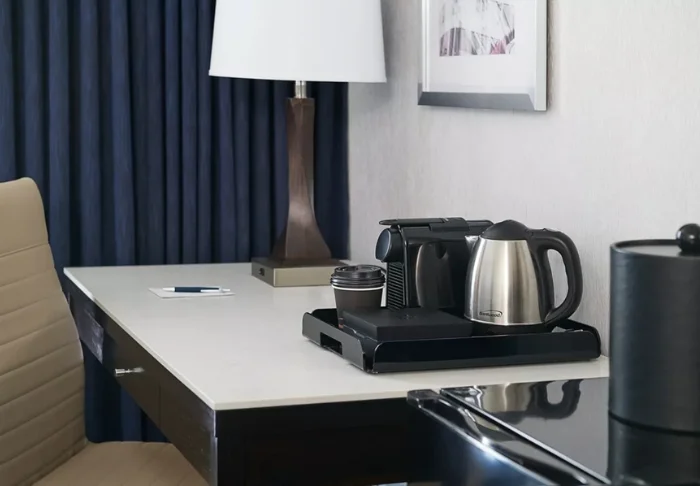 When you get peckish, you can take your pick from several dining options within the hotel, catering to every meal of the day. There’s a restaurant serving both European and Canadian cuisine, as well as a café where you can grab a coffee to go.