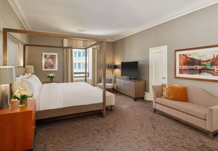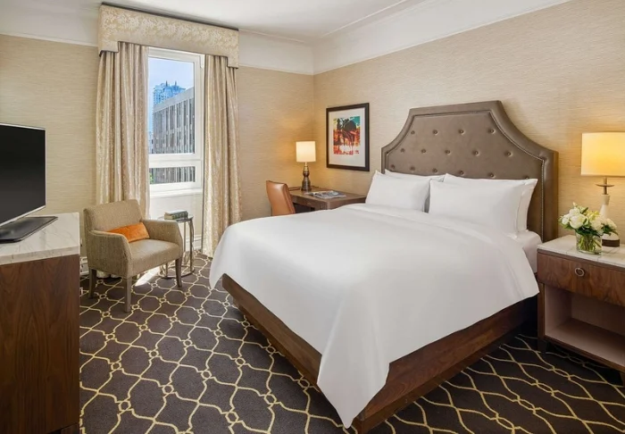 Fairmont Palliser invites you to experience a historic hotel from 1914, which today boasts wonderfully preserved Edwardian details, with high-ceilinged halls, wooden panelling, and pillars that greet you as soon as you enter the lobby. The historical charm extends to the hotel’s rooms, which are decorated in warm colours and classic wooden furnishings. All rooms are equipped with air conditioning, a mini fridge, coffee and tea making facilities, complimentary Wi-Fi, a TV, and a private bathroom with a hairdryer, bathrobes, and a free selection of toiletries.