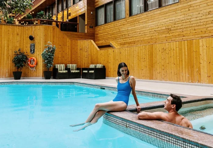 There are three restaurants to choose from at the hotel. Legends Restaurant serves breakfast and lunch buffets, while Timberwolf Pizza & Pasta Café offers Italian dishes for dinner. The Explorers Lounge has a relaxed pub atmosphere with a menu of hot meals and drinks. In the lobby, you’ll also find a convenience kiosk open 24 hours a day, offering snacks and beverages. All meals are at your own expense unless otherwise specified in your offer. When you’re ready to unwind, you can make use of the heated indoor pool, jacuzzi, or steam bath, and during the summer season you can borrow a bicycle to explore more of the area. There’s also access to a 24-hour gym, laundry facilities, game room, and a cosy lounge with a fireplace—perfect for warming up and relaxing after an active day in the mountains.
