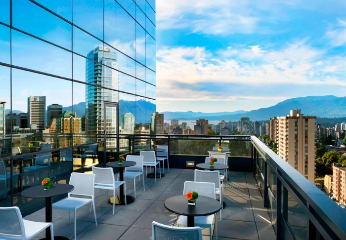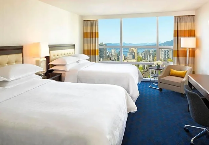 Located in the very heart of Vancouver, the Sheraton Vancouver Wall Centre is a sleek, contemporary hotel made up of two impressive glass towers. From here, you’re treated to stunning views over the city skyline, the snow-capped peaks on the horizon, and the vast Pacific Ocean. The hotel places you just a short stroll away from Robson Street, renowned for its array of shops, restaurants, and lively cafés. Canada Place and the waterfront are a brisk 1.5 km walk away, while those eager to discover the green oasis of Stanley Park will find an entrance close to English Bay beach, around 1.3 km from the hotel. Near English Bay, you’ll find plenty of bike hire outlets—perfect if you fancy cycling the iconic path that winds around the park.