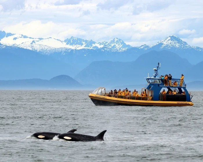 The cruise itself departs from the charming little fishing town of Steveston in south Vancouver, roughly a 25-minute drive from Vancouver city centre. Steveston is known for its maritime history and cosy harbourfront atmosphere. From here, you’ll head out with your fellow travellers and expert naturalist guides on an unforgettable whale-watching tour lasting between 3 and 5 hours.