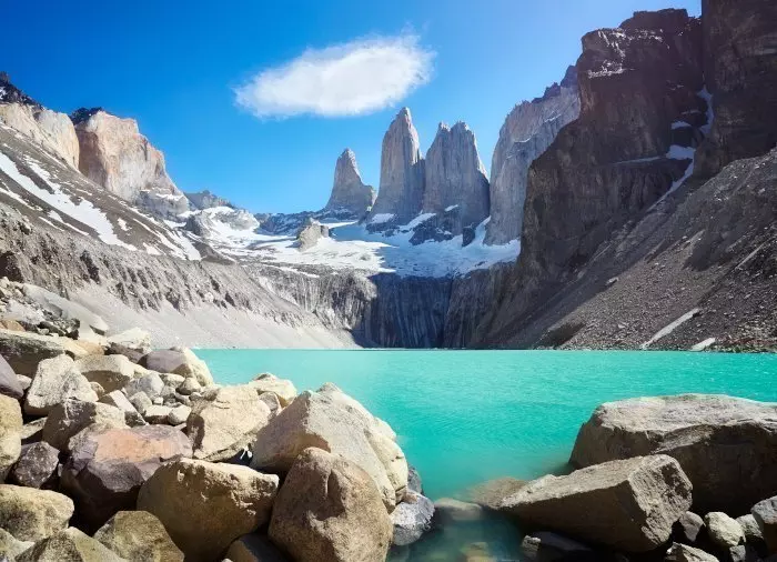 Along the route, you cross ice-cold mountain streams and walk along moraines deposited by glaciers over time. The last section takes you upwards and is very uneven, and on some parts of the route there are very steep drops, which can be hard on the knees. But the rewards are great when you reach the “Base de Las Torres” at the foot of the vertical granite towers, Torres del Paine, after which the national park is named. Here, you eat you packed lunch and have the opportunity to take photos of the amazing landscape before heading back the same way again. After a long day’s hiking, you will be driven back to your hotel.
