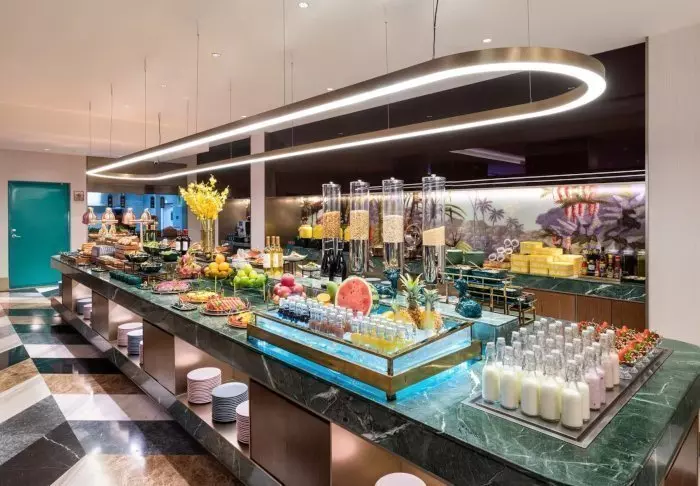 In the hotel’s breakfast restaurant, a large and delicious selection of both Western and Chinese-inspired food awaits you every day in the large breakfast buffet.