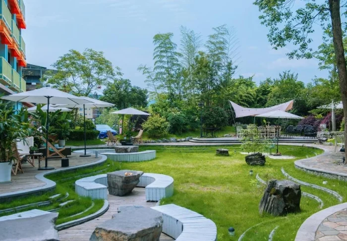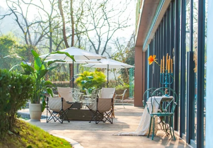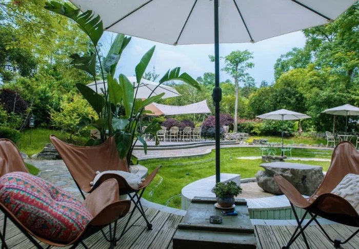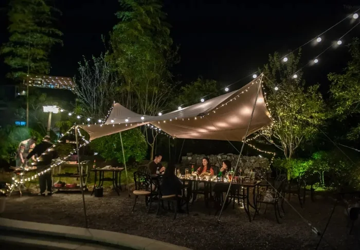 The outdoor area is an essential part of the experience. The garden is landscaped with pathways, greenery and cosy seating areas. During the day, it offers a tranquil spot to rest between excursions, while in the evening, guests often gather under twinkling string lights to enjoy a relaxed atmosphere where time seems to slow down.