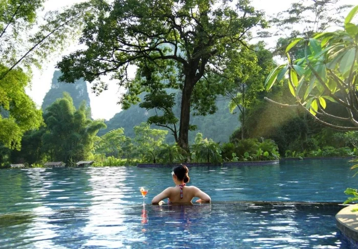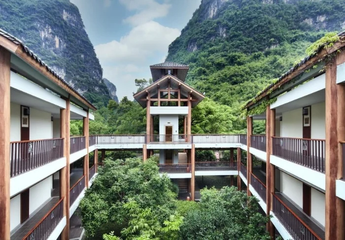 Yangshuo Riverside Resort sits in peaceful surroundings on the banks of the Yulong River, a lush, green area just outside Yangshuo. A stay here includes views of the karst peaks and the small paths that follow the river. The resort’s location strikes a lovely balance between tranquillity and proximity to the area’s highlights, and you’re within easy reach of both the Yulong Valley and Yangshuo’s lively centre.