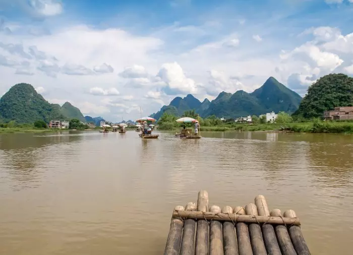 Embark on a sedate rafting trip on the Yulong River, the longest tributary of the Li River, which flows from Guilin to Yangshuo.