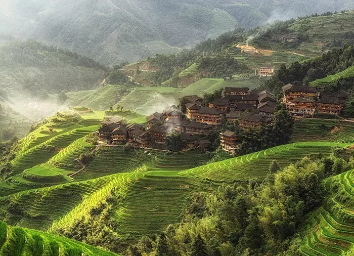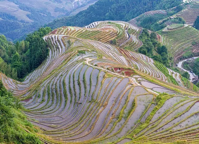 Ping’an is famous for its location in the midst of Longji’s stunning rice terraces, which stretch as far as the eye can see. Longji means dragon’s back, and that is exactly what the curved rice terraces look like. It’s not difficult to understand why they are said to be the world’s most beautiful and why they attract poets, photographers and tourists from near and far. They are massive, breathtaking and overwhelming! The terraces, which cling to the steep mountain slopes at an altitude of 300–1100 metres, were created by the ancestors of the Zhuang tribe