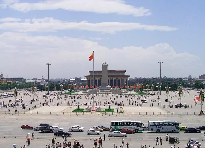You continue from here to Tiananmen Square. The square is not only one of the most famous squares in the world, but it is also the largest in the world, measuring 880 metres from north to south and 500 metres from east to west.