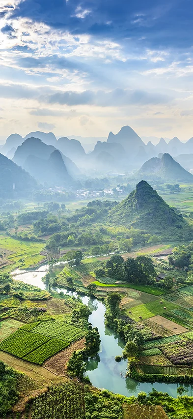 This morning, you will wave goodbye to scenic Yangshuo. You will be picked up from the hotel and driven to Guilin airport, from which you will fly to bustling Shanghai.