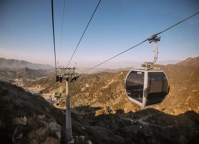 The wall is divided into several different areas, and you will visit the less touristy area, Mutianyu. You and the guide will be dropped off in the car park close to Mutianyu, and from there you walk up a steep road to the cable car that takes you up to the wall.