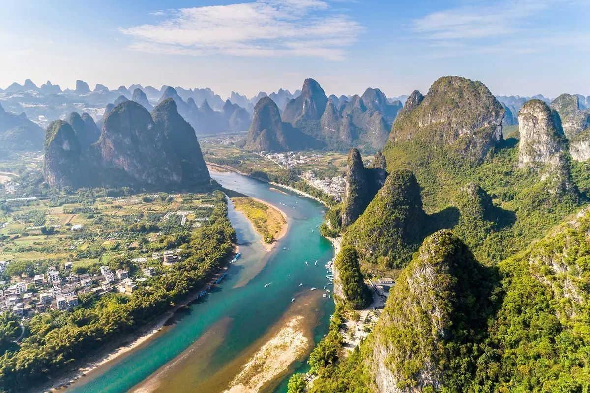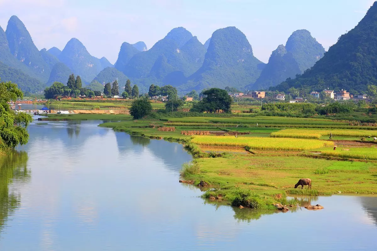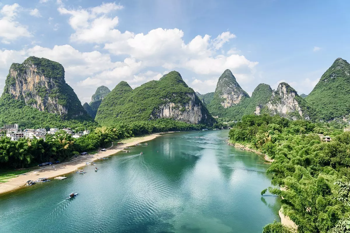 After breakfast, you’ll be collected from your hotel and driven to the train station, where you will board the high-speed train to Yangshuo. This is an incredibly scenic journey, taking you through landscapes dotted with lush green mountains, waterfalls, and small villages – sights you would miss if you flew. You’ll cover the roughly 1,200 km distance in just 7 hours. Upon arrival in picturesque Yangshuo, a guide and driver will be waiting to welcome you. Together, you’ll be transferred to your hotel, which is about a 30-minute drive away.