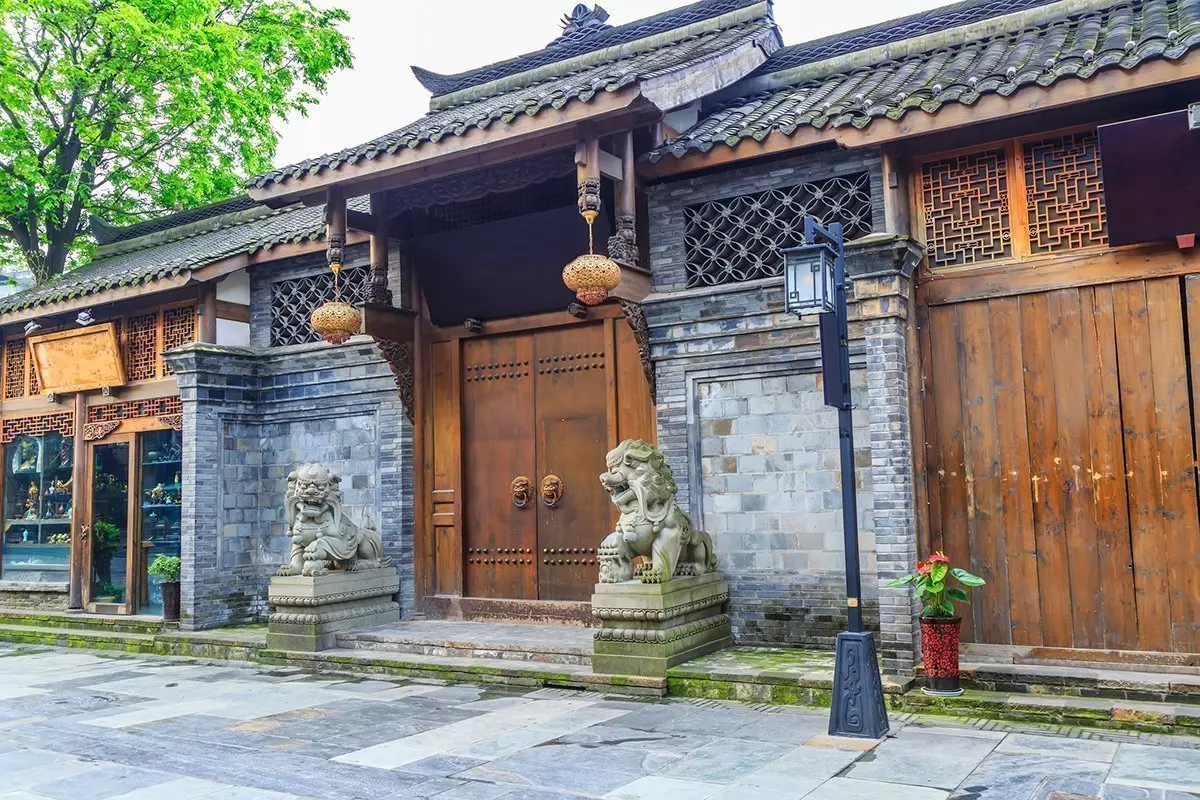 The tour ends with a walk in the quaint Kuan Zhai Alley neighbourhood, one of the best-preserved historic areas of Chengdu. The area consists of three parallel streets separated by square courtyards: Kuan Alley, Zhai Alley and Jing Alley. The neighbourhood provides a good insight into the folk culture and ancient Chengdu. You can, for example, see wall paintings showing what Chengdu looked like in olden days, and elegant traditional houses with beautiful lanterns and decorated doors from the Qing dynasty. Some of the houses are original, others are newly renovated or new builds. Cosy tea houses and eateries line the streets, as do shops selling exquisite handicrafts and jewellery.