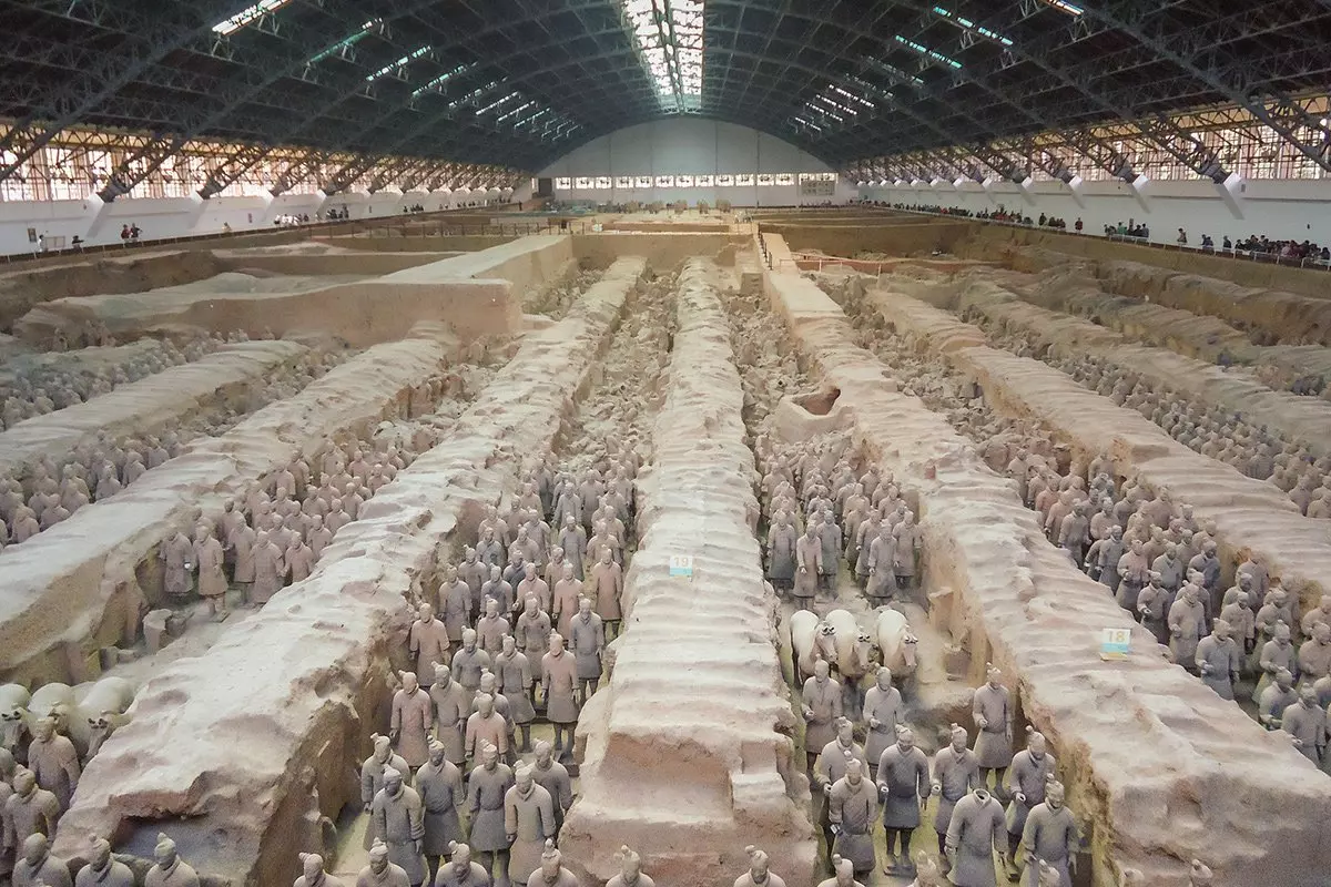 It was local farmers, going about their daily work in the fields, who discovered fragments of a man-sized sculpture in 1974. Archaeologists continued the excavations to unearth the world’s largest-ever find of underground sculptures. The excavations revealed more than 7,000 terracotta warriors, horses and carts. The warriors measure between 175 cm and 190 cm, and no two warriors are alike. They all have different facial features, hairstyles and costumes. They are lined up near the tomb of Emperor Qin Shi Huang. It is said that the warriors were built to protect their rulers in the afterlife.