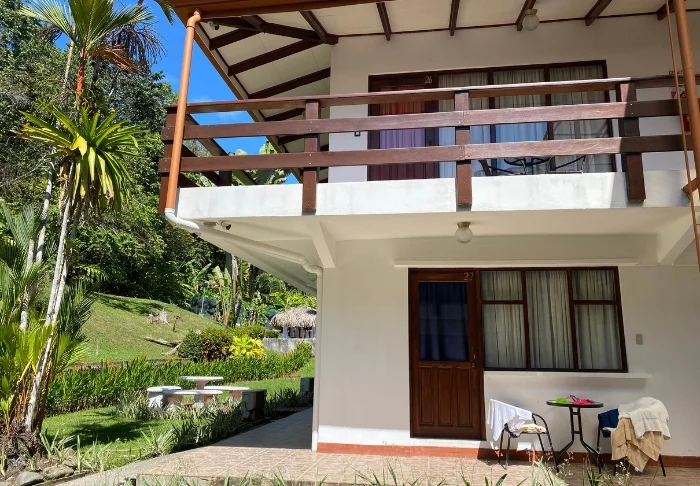 The lodge consists of wooden cabins built in a rustic style in keeping with the local nature. All cabins have an en suite bathroom and a TV. They all have their own balcony, which is the ideal place to enjoy a quiet moment with a good cup of Costa Rican coffee and a book with a view of the wild nature of the jungle.