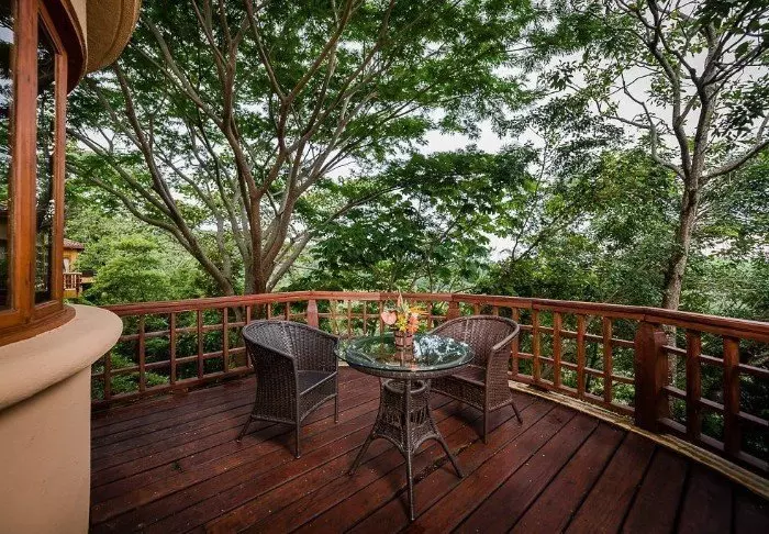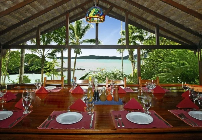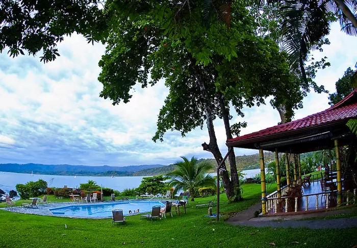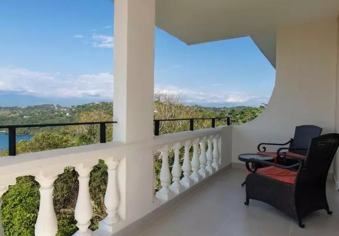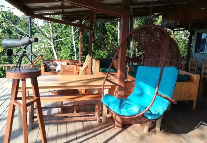 From the veranda, you can relax and enjoy views of the bay and the jungle.
