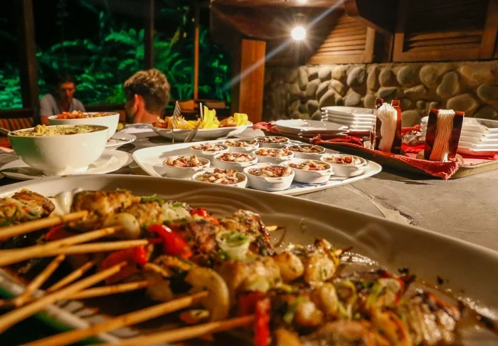 During your stay in Tortuguero, your meals are included in the price and they are served as a buffet in the Mambo restaurant, which is located right by the swimming pool. For an additional fee, you can reserve a table at Katonga, the lodge’s floating restaurant, and enjoy your dinner in the middle of the rainforest as you slowly glide down Tortuguero’s canals (reservation required).