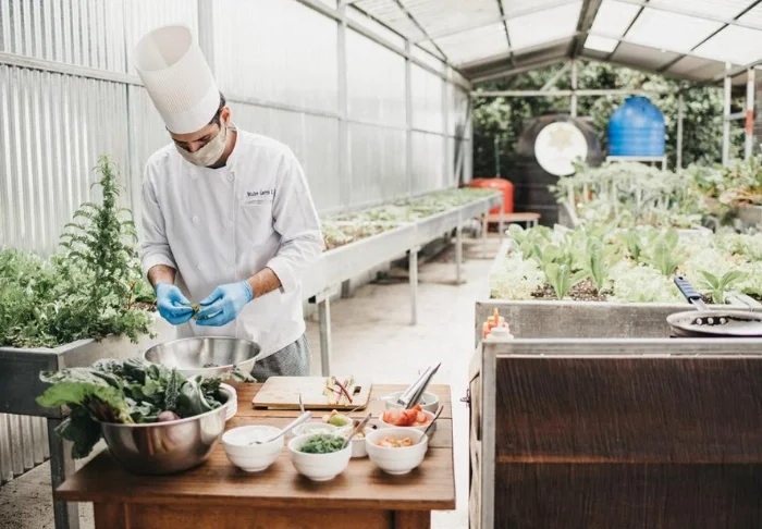 The resort has its own restaurant, which serves a combination of local and international dishes made from ingredients largely grown in its own kitchen garden.