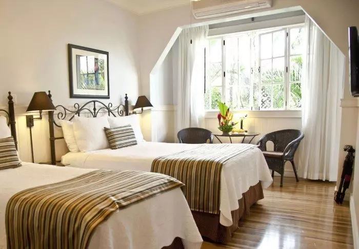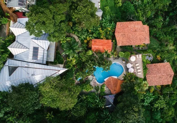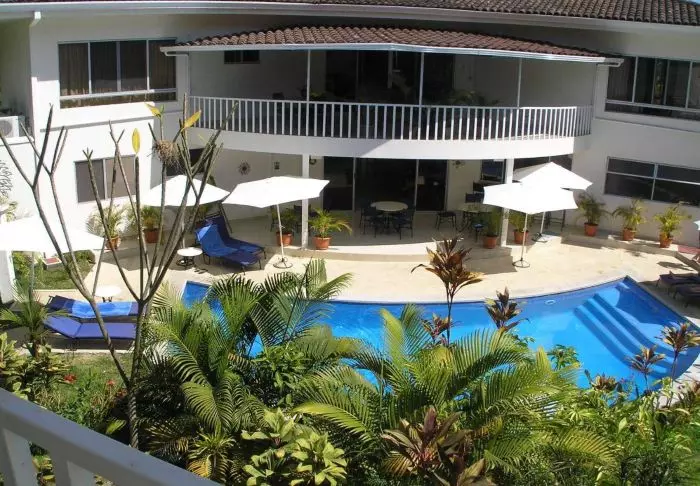 The hotel has only 25 rooms and is built around a small, lush garden with a swimming pool and spa bath in the middle. Here, you can relax in a sun lounger with a good book, or enjoy a cool drink, or a Costa Rican coffee from the hotel bar.